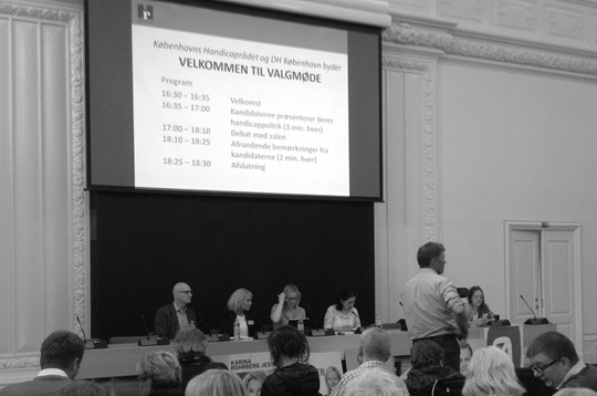 Handicaprådet i Københavns Kommune og DH København afholdt mandag et stort valgmøde med fokus på handicappolitik i Landstingssalen på Christiansborg. Mødet var planlagt før valget blev udskrevet, men alle politikere valgte alligevel at prioritere mødet.