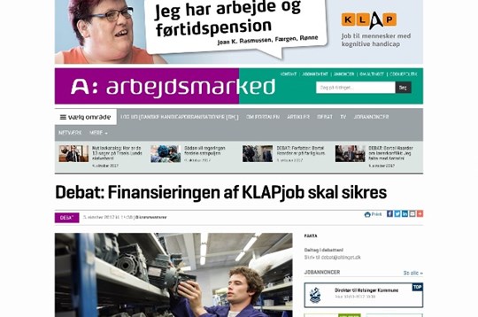 På den baggrund har vi svært ved at forstå, hvis man ikke fra politisk hold ønsker at fortsætte KLAPjob. Men det er et muligt scenarie. KLAPjob er finansieret af satspuljemidler, som udløber i 2017. Hvis ikke projektet opnår ny finansiering, så forsvinder jobskabelsen sammen med netværket af landsdækkende virksomheder.